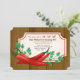 Um grande convite a quente que mostra um aglomerado de pimentos pimentões vermelhos enquadrados com uma borda decorada contra fundo de madeira. (FP). <br/>() O cartão é fácil de personalizar com seu texto, fonte, cor da fonte e escolha de seis tipos de papel.<br/>() Não exatamente o que você está procurando? Todos os nossos produtos podem ser personalizados para atender às suas necessidades sem custos adicionais.<br/>() Basta entrar em contato conosco em askpixieprints@aol.com.<br/>() Coordenar os produtos disponíveis: