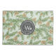 Lindos galhos de pinheiro de aquarela e pinheiros com um padrão de neve com um crachá de aquarela redonda e um monograma. Um adorável padrão de inverno de aquarela. Personalize alterando a cor de fundo, o texto ou substituindo o monograma pelo seu próprio logotipo.