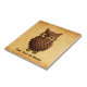 Uma coruja fofa feita de escamas de pínus. Personalize adicionando seu próprio texto.