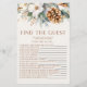 Este é um Floral de Árvore de Pinheiros de inverno Encontrar o Jogo do Chá de fraldas Convidado. *Find The Guest - Este é um jogo de quebra-gelo. O jogo inclui 15 perguntas. Cada convidado irá ao redor do chá para encontrar outros hóspedes, encontrar pessoas que combinem com cada pergunta, e depois preencher seus nomes. Quem tem mais nomes preenchidos, ganha!
