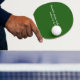 Raquete de Ténis de mesa com o slogan “Conjunto, fazem brilhar o Togo assim como o ouro da humanidade” inscreve de um lado.
