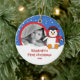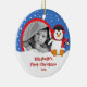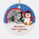 Os enfeites de natal bonitos da foto que caracterizam um pinguim adorável ajustado em um fundo azul do floco de neve, apenas adicionam SUA FOTO! Aperfeiçoe para o primeiro Natal & o segundo Natal. Um presente do Natal da maravilha sure a ser estimado por muitos próximos anos.