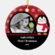Os enfeites de natal bonitos da foto que caracterizam um pinguim adorável ajustado em um fundo vermelho do floco de neve, apenas adicionam SUA FOTO! Aperfeiçoe para o primeiro Natal & o segundo Natal. Um presente do Natal da maravilha sure a ser estimado por muitos próximos anos.