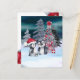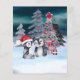 Cena de Natal de Pinguim - um Cartão de Férias muito bonito de Ricaso com dois pinguins em frente a uma árvore de Natal enfeitiçada com bolas vermelhas e uma flor de poinsettia em uma floresta com neve