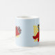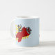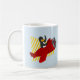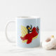 Mug com design com ilustração de um pinguim que voa num plano vermelho; ilustrada por Radka Kavalcova/MaxiHarmony