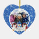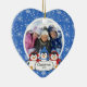 Nossos enfeites de natal da família caracterizam uma fileira de 3 pinguins ajustados em um fundo azul enchido floco de neve! Personalize com sua informação e data e você são todos ajustam-se para ir! Presente datado maravilhoso da lembrança para seu primeiro Natal e uma grande adição a você coleção dos enfeites de natal.