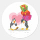 Este design é pinguins com presentes. Há dois pinguins e o são presentes de carregando. Este pinguins com presentes design parece excelente neste adesivo