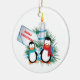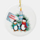 Pinguins De Natal E ornamento personalizado De Velas. Dois pinguins bonitos com cachecol e atrás deles uma vela e agulhas de pinho.