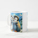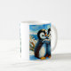 Pinguins gêmeos pés felizes abraçando xícara de ca