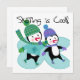Dois pinguins com skate de gelo no lago congelado vestidos de chapéus de inverno, lenços e mitenes coloridos, raspados, e texto preto lê Skating é Legal sobre o tema T-shirts, canecas, cartas, bolsas, guardas, travesseiros, capuzes, adesivos e muito mais!