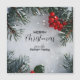 Envie alegria natalina com este cartão de Natal personalizado com uma bela cena de inverno de galhos de pinheiro cobertos de neve e brilhantes frutos vermelhos de azevinho. Enquadrado por agulhas de pinheiro verde geladas e colocado contra um fundo suave e nevado, este design captura a essência de uma atmosfera aconchegante de Natal. O cartão inclui sinceros votos de Natal, espalhando calor, paz e alegria para os entes queridos. Perfeito para aqueles que amam designs festivos inspirados na natureza e saudações de Natal atenciosas.