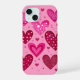 A playful mix of pink and red patterned hearts. This cheerful, modern artwork celebrates love and positivity and is perfect for Valentine’s Day
