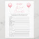 Este jogo de palavras-chá de fraldas é perfeito para um chá de fraldas ou um bebê aspergindo. Este jogo de palavras 'scramble' apresenta um balão de aquarela rosa e um arco fofo. Você pode personalizar este design clicando em "Personalizar este modelo" ou se quiser alterar a fonte, as cores ou organizar os elementos design de uma forma diferente, você pode clicar em "Editar usando a Ferramenta Design". Tecla de Resposta: 1. Fralda 2. Bassinet 3 Frasco 4. 5. Pacificador 6. Mudando a Mesa 7. Animal recheado 8. Rolador 9. Borracha Ducky 10. Cobertura 11. Junto 12. Fórmula 13. Alta Presidente 14. 15. Termômetro 16. Bebê 17. Leite 18. Boies 19. Um lado 20. Urso de Pelúcia