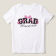 Coquette graduation t-shirt for a girly graduate with GRAD written in muted black varsity letters, with a bow on top with its ribbons curling around the letters. Personalize with the year in a pretty black script.