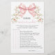 Add a touch of elegance to your cute preppy baby girl shower with our sophisticated "Over or under" game. Featuring a charming pink watercolor bow surrounded by pink flower bloom, this delightful activity is perfect for enterntaining your guests and creating lasting memories.