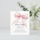 A clear, transparent background, decorated with a pink large bow with pearls. Personalize and add a name and party details.
