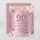 Pink Floral Glitter Budget 90 Aniversário Convite