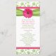 Você pode personalizar todo o texto desses programas de casamento personalizados de gérbera (gerber) rosa-quente, damasco floral verde e fita. O design apresenta uma margarida rosa brilhante e alegre de gerbera rosa e uma fita limão ou verde primavera sobre um fundo de cor damasco floral verde e branco. NOTA: este é um design impresso plano sem nenhum embelezamento em relevo ou em 3D. Para alterar o texto, use as opções personalizar. Ou, para alterações mais abrangentes (fonte, tamanho da fonte, cor da fonte, posicionamento do texto), escolha personalizá-la. Este é um programa de casamento barato e excelente para um casamento no primavera ou verão ou um casamento com um tema de flor de margarida rosa.