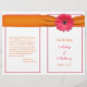 O texto e a cor de fundo deste programa de casamento de fita laranja rosa na margarida cor-de-rosa é perfeitamente personalizável. Destina-se a ser dobrado ao meio quando a recebe. Para alterar o texto, use a opção personalizar. Para alterações mais abrangentes, como alterações na fonte, cor da fonte, tamanho da fonte, cor do plano de fundo ou layout de texto, use a opção personalizar. Além disso, uma vez que seu texto seja finalizado, se você precisar movê-lo um pouco, você pode fazer isso usando a opção personalizar. Este programa especial de ocasião da margarida gerbera rosa, fita laranja é personalizado como um programa de casamento, mas funcionaria bem como um programa para uma celebração de aniversário (doce 16), chá de casamento, ou possivelmente uma celebração de segundo grau também. Na verdade, isso até faria um belo boletim da igreja com mudanças no texto. Deixem a vossa imaginação guiar-vos. É recomendável que isso seja adquirido apenas como um acabamento padrão de 80 lb. A opção de papel de 100lb é difícil de dobrar e, portanto, não é recomendada.