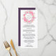 Nosso cardápio de casamento garden chic apresenta seus pratos de entrada, principais e sobremesas em letras elegantes, com seus nomes circulados por uma grinalda botânica rosa de rosas em aquarela e folhas e folhagens. Coordena com nossa coleção de casamento Pink Love Wreath.
