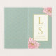 Delicar o padrão verde asiático com pénicas cor-de-rosa pastel e iniciais em negrito.