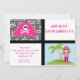 Ahoy Matey! Procurando por tesouro? Este convite é perfeito para aquele pirata. Este convite está dividido em 4 partes. O canto inferior direito tem um adorável pirata parado debaixo de uma palmeira de cabelo castanho. Ela tem um chapéu de bucaneiro rosa quente na cabeça. Ela está segurando um papagaio verde numa mão e uma espada na outra. O canto superior esquerdo tem um grande chapéu de pirata rosa-quente com um crânio branco e ossos. O fundo é uma cinza com cabeças de crânio por todo o lado. Personalize com as informações de seu partido. Dê uma olhada em nossos muitos outros designs e produtos nesta linha.© JW Illustrations