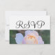 RSVP de Casamento escrito em um roteiro elegante preto contra fundo branco nítido, rosa rosa-rosa pastel delicada e verde-claro. Adorável para um casamento de primavera ou verão. Personalize o lado de trás em cores douradas e tipografia negra. Fotografia original e Design por TamiraZDesign.