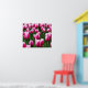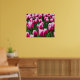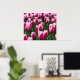 Poster shown with a photo print of a field of pretty pink tulips. Customize this item or buy as is. Stock Image