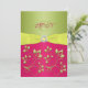 Este convite de casamento monograma cor-de-rosa, amarelo e verde tem uma fita amarela IMPRESSA e um arco com uma pedra gemstone IMPRESSA e um broche de joia de diamantes nele. O texto é personalizável. O tipo de papel também é personalizável. Se você precisar de outros itens neste design, envie um e-mail com sua solicitação para niteowlstudio@gmail.com.
