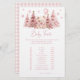 Add a touch of elegance to your winter festive themed baby girl shower with our sophisticated "Baby Traits" game. Featuring a charming teddy bear wearing cute pink bow, holding a pink balloon, surrounded by winter pine trees and snowflakes and baby pink gingham pattern at the back, this delightful activity is perfect for entertaining your guests and creating lasting memories. Ideal for adding fun and excitement to your special celebration!