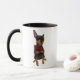 Pinscher diminuto (Pin do minuto) com a caneca de