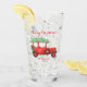 Copo de Vidro de Natal com caminhão vermelho carregando uma árvore de Natal em frente e atrás. Mais produtos com este design na coleção abaixo.