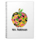Um caderno espiral para os professores que caracterizam uma ilustração de uma maçã do splatter da pintura. Personalize com seu nome.