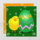Pintinho e ovos coloridos de Páscoa, ilustração de desenho animado