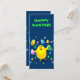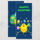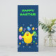 Pintinho e ovos coloridos de Páscoa, ilustração de desenho animado