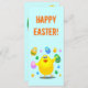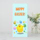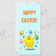 Pintinho e ovos coloridos de Páscoa, ilustração de desenho animado