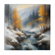 Uma pintura sereníssima de sereno belo de inverno com aquarelas que apresentam um rio cristalino enrolando em terreno nevado, cercado por árvores. Perfeito para amantes da arte.