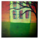 Minha pintura abstrata funky de uma casa antiga impressa em azulejo de cerâmica