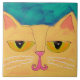 Minha pintura de abstrato de um gato amarelo faz esse azulejo decorativo como um perfeito para amantes de gatos!