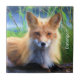 Azulejo cerâmico personalizado com uma bela imagem de vida selvagem de uma raposa vermelha que se deita em gramíneas verdes. Esta criatura fofinha tem pelo macio e olhos gentis. A imagem tem uma sensação mágica sonhadora.