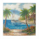 Uma pintura pelo cPlo. Este ajuste tropical em um dia ensolarado indica um bungalow havaiano com um bote que desnata as ondas.