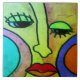 Minha pintura digital abstrata funky de uma face impressa em azulejo de cerâmica