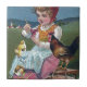 Pintura Vintage de Páscoa de Menina com Galinhas