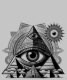 Exibe um trabalho de arte digital com representação gráfica de uma pirâmide dentro de um olho, cercada por estruturas piramidais adicionais que criam uma paisagem surreal envolvendo-se em um místico conjunto de tons pretos e brancos, lembrando sombras e luz tocando em um ambiente como sonho. Colinas insólidas oscilam suavemente debaixo de um céu estrelado, iluminadas por detalhes brilhantes e contrastantes que evocam uma sensação de movimento e inexplicável.