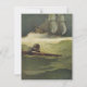 Ilustração antiga de conto de fadas por NC Wyeth apresentando um pirata flutuando nas ondas da água do mar profundo após o naufrágio de seu navio pirata no oceano, outro galeão está ao longe.