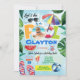 QUALQUER IDADE - basta editá-la e adicionar sua própria foto. Um convite bonito e chique para o aniversário do seu filho. Pegue isso agora! (a versão da menina também está disponível em nosso compro!) Tema: Festa de Piscina de Verão. Cores Tropicais: Azul, verde, roxo, laranja, amarelo. Estilo: Aquarela. Design: Folhas tropicais, bola de praia, óculos escuros, parasol colorido, sorvete, flocos de sacudir.