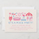 Esta Piscina e Convite de festas têm um design divertido moderno com gráficos coloridos em vermelho, rosa e azul. Faça um salto com seus convidados de festa! Personalize facilmente seu convite usando os recursos de edição do zazzle.