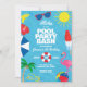 Aloha, é um Bash do Partido Piscina - personalize para qualquer aniversário ou festa de piscina! Luau Birthday Convide perfeito para sua piscina de verão ou festa de aniversário insuflável de água. Design apresenta fundo de água com óculos de sol, sol, guarda-chuva, picolé, bola de praia, palmeira, flamingo e flor de hibisco.