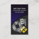 Um pistão e uma engrenagem formam a imagem principal neste cartão de visita de reparo mecânico/automóvel que você pode personalizar com seu nome e detalhes.