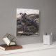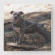 Este relógio de parede mostra um belo Blue Nose Pitbull chamado Sarge. Sargento está parado com suas pernas musculares traseiras esticadas atrás dele e suas patas dianteiras em cima de seu brinquedo favorito, um skate. Este relógio de parede é perfeito para amantes de cães.